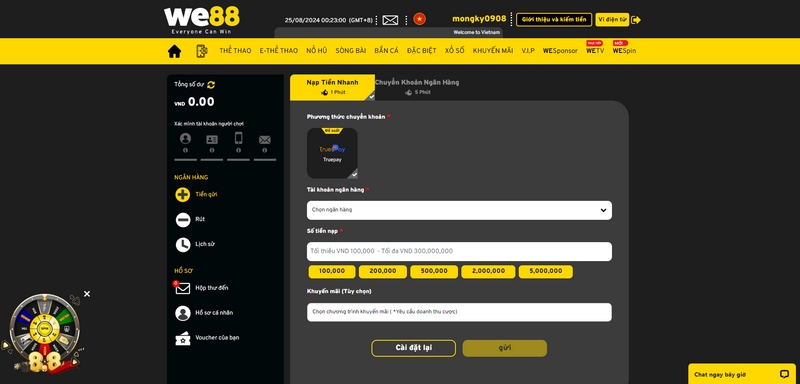Hướng dẫn nạp tiền We88 nhanh chóng, an toàn